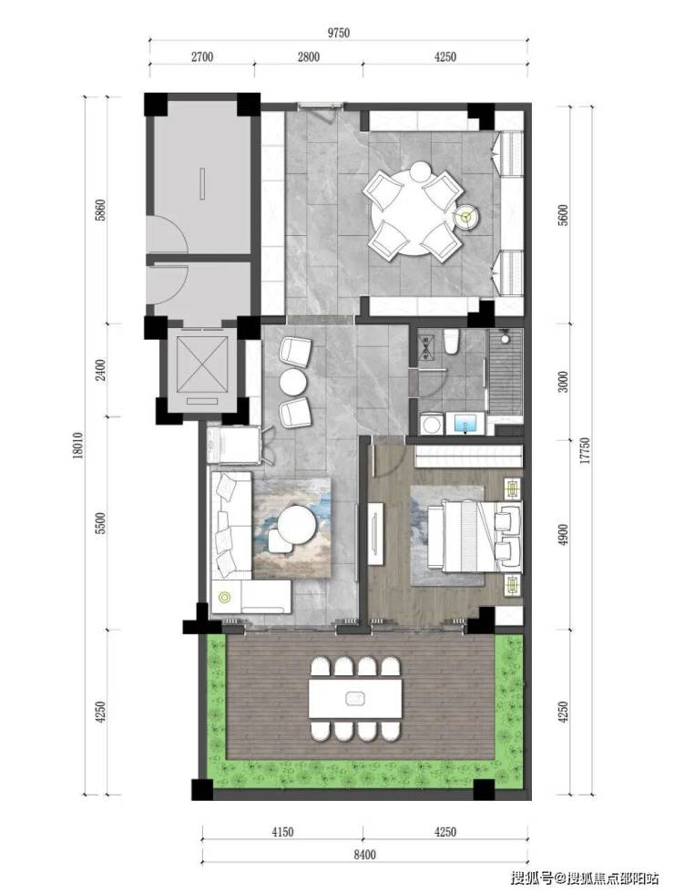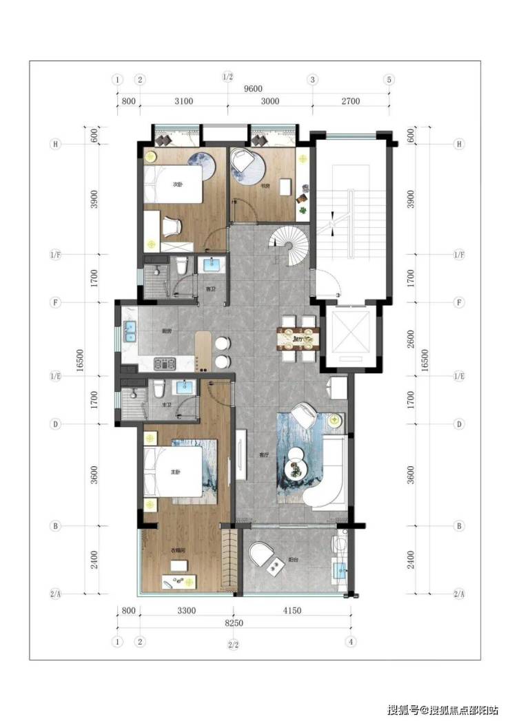 3.下叠:建筑面积约100-110㎡,四房三厅三卫。