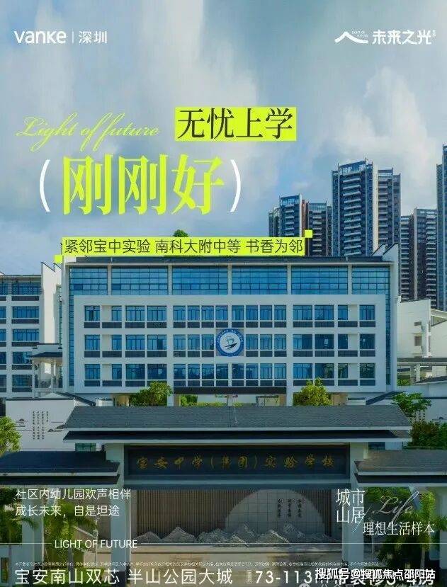 万科未来之光项目是万科联合人才安居集团打造的超30万㎡的理享生活大城。 未来之光项目直线距离前海不到6.5公里,受“南山+宝安”双核心辐射。从项目出发,开车仅半小时可到达深圳最主要的工作区域:宝安中心、留仙洞、南山科技园、前海后海、车公庙、福田CBD等。步行可达地铁5号线兴东站,规划中的地铁15号线被称作“深圳一环”,涵盖了会展新城、海洋新城、太空港片区、铁仔山科技城、宝中及大铲湾、前海核心区、留仙洞总部基地、尖岗山高新园、蛇口片区等大湾区乃至国家大力发展的产业片区。