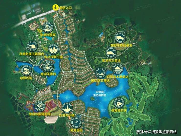 拟打造为集休闲、度假、娱乐、健身和养生为一体的高端综合性旅游度假胜地。其中项目首期将建成欧洲风情小镇、儿童探索王国、山谷温泉、机动游乐园、水上乐园、湿地花海婚庆公园、茶文化创意园、路亚垂钓基地、绿野农业公园、汽车营地、越野体验基地、特色木屋酒店、茶园主题帐篷酒店等旅游项目。