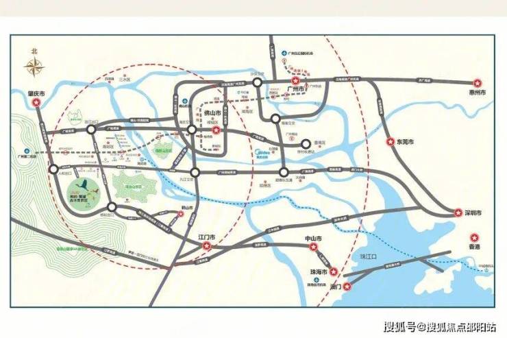 项目位于广佛肇腹地,江肇高速、高明大道、杨西大道三线合围的辖区内。项目离江肇高速人和收费站出口2公里,离广明高速明城收费站出口8公里。项目有多条区内公交线路(501、502、504、506),公共交通便利。