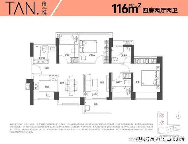 116㎡四房两卫(东南朝向):横厅南北通透,客餐厅6米开间,五开间朝南(采光面13.8米),主卧套房设计带景观飘窗,南北双阳台形成穿堂风。特点:台式简约风格,赠送面积约12㎡(含阳台、飘窗),得房率含赠送达82%,通风采光为项目最优。总价约500万起,适合改善型家庭。适配人群:追求空间尺度和居住品质的家庭,重视学区及未来增值潜力。
