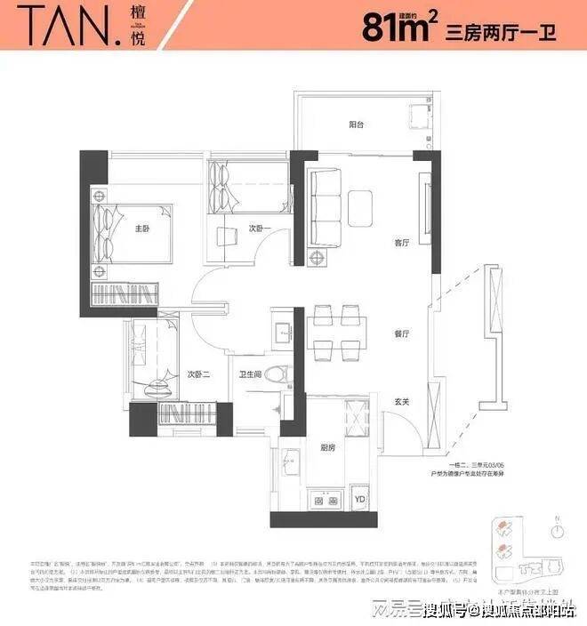 现推出1栋2/3单元,共610套房源,面积有81㎡的3房1卫,95-96㎡的3房2卫,116㎡的4房2卫户型。