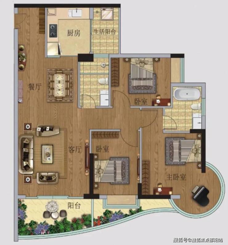 🅣🅞🅟02户型【95㎡3房2卫】东南向望江