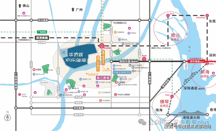 【世纪大道】横跨石岐区、东区、火炬开发区、翠亨新区,最终接驳马鞍岛深中通道;