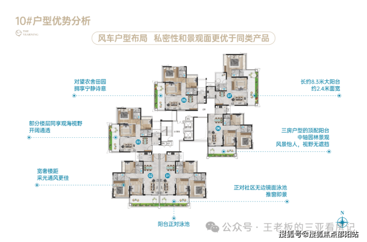 ❥❥10#2T6(03/05/06号位户型鉴赏)🏡约102㎡三房两厅两卫,🏡风车行布局,实现每个户型的单边采光、观景视野🏡南北对流,空气流通俱佳🏡高楼层可观山海,对望田园屋舍,视野无遮挡
