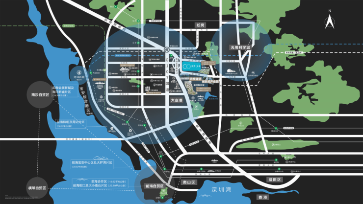 前海·泓瑞位处沙井新玉路,毗邻前海扩容区,15分钟车程直达光明科学城。立定沙井,左拥前海扩容、右临光明科学城,占位双核核芯位置。