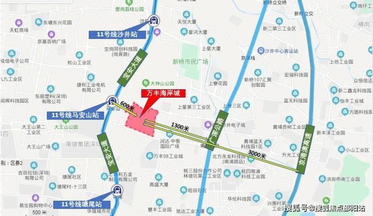 万丰海岸城檀府万丰海岸城,这座矗立于宝安“西部城市中心”的超级城市综合体,以其卓越的地理位置和完善的配套设施,自2021年首批产品入市以来,便持续引领着市场的热潮,成为深圳西部的一颗璀璨明珠。项目紧邻地铁11号线马安山站东侧约300米(地图测量数据仅供参考),不仅占据了宝安区重大设施落实的核心区域,更是新桥新中心打造的焦点所在。