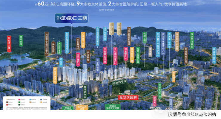观澜,龙华行政中心,与红山商业中心、老政商贸中心形成龙华三大中心;