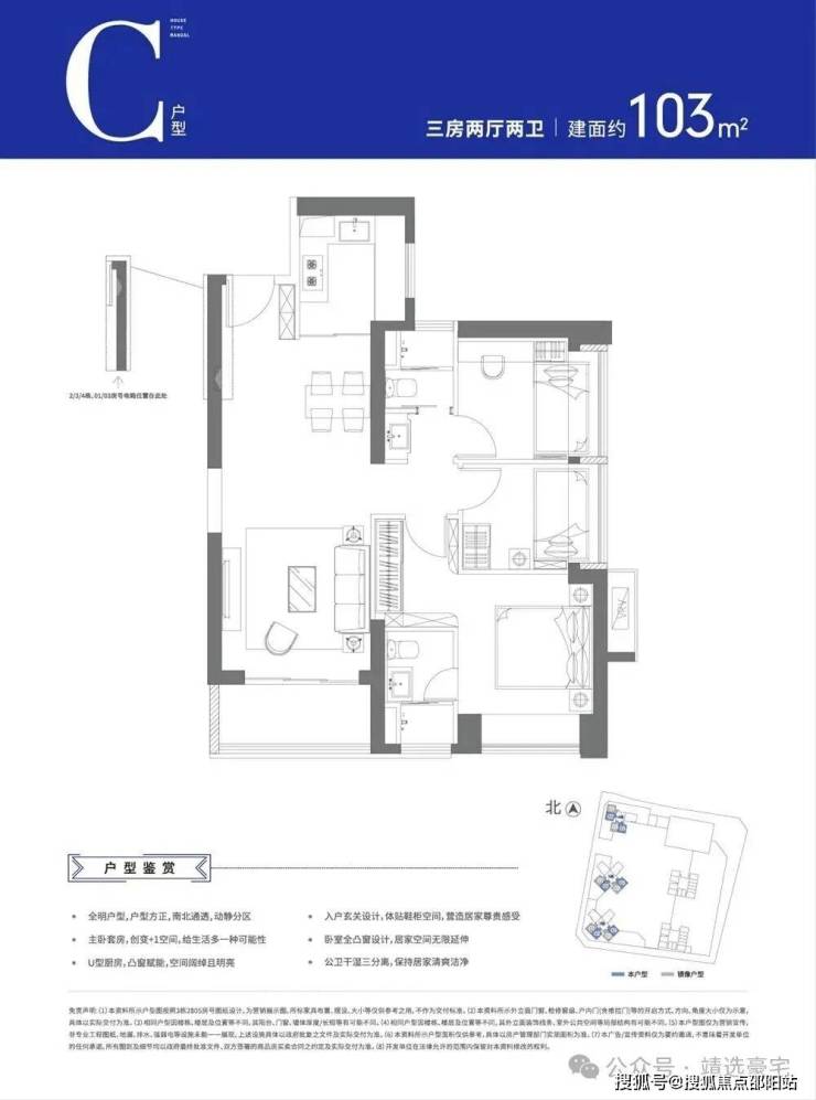 可售户型:103㎡三房两厅两卫、129㎡四房两厅两卫