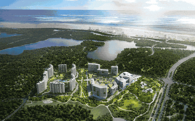 艺海棠艺术综合体位于海棠湾核心位置海岸大道中段,总占地面积约500亩,总建设面积约50万㎡,容积率1.5,住宅部分建筑密度仅约16%。绿化率超过60%。项目由三个区组成,分别为南部艺术前区、中部艺术商业区、北部高端住宅区。