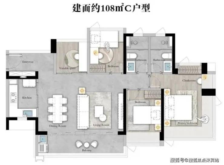 产品涵盖建面约88-108㎡三至四房, 是科学城首个全面采用建筑新规设计的项目,据悉户型使用率接近100%。