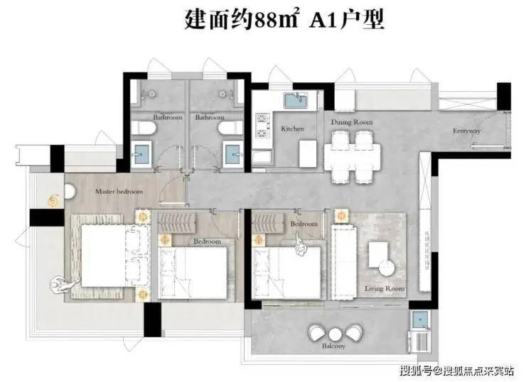 ●阳台+餐客厅+第三拓展空间,在家就能开party