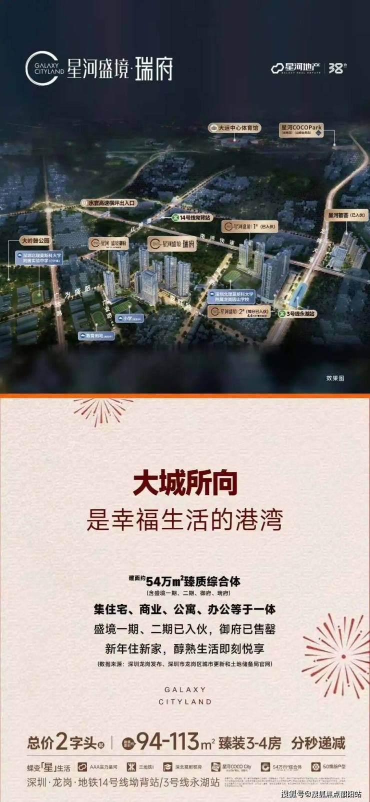龙岗永湖,星河盛境3期(盛境瑞府),与大运新城仅一路之隔。这里不仅是深圳东部中心的中央活力区,更是政府规划的“深港国际科教城”,预计投资高达1800亿元,旨在打造集科创、教育、商务于一体的未来城市客厅。 项目所在的片区已形成以智能制造和信息技术为主导的产业集群,吸引了近3000家高新企业入驻,为区域注入了强大的发展动能和人才储备。
