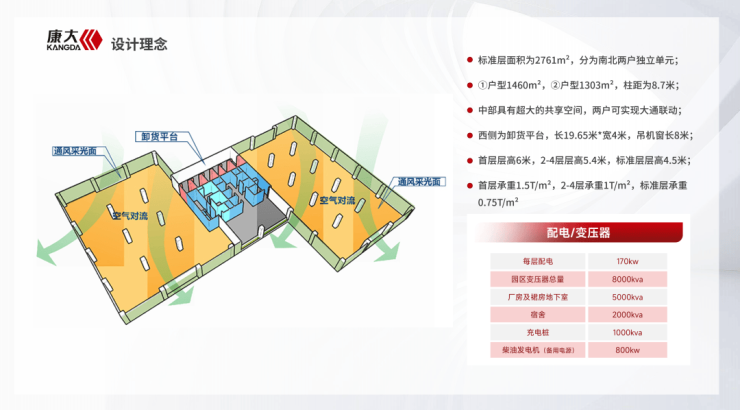 标准层高4.5m,承重0.75T/㎡