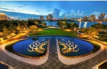 园林与设计独具匠心。为实现最大观江延展面,住宅以龙型布局环抱港湾,实现 IMAX 环幕瞰江视野。围绕 C 型内港湾公园,以 “BIG C” 理念打造滨江商业,开创广州先河。约 8 万平内湾码头,为业主带来滨水餐饮、水上游艇等多样化国际港湾生活。首次开放的营销中心未来将成为业主滨江会所,门前水景与展示区保留的五颗古榕树,增添归家仪式感与老广情怀。园林内叠瀑、溪涧、景石、植被相互映衬,营造出曲水流觞的意境。