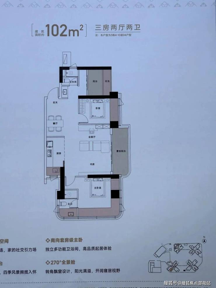南北向主力户型,北揽山景、南瞰海湾,部分户型三重景致全覆盖