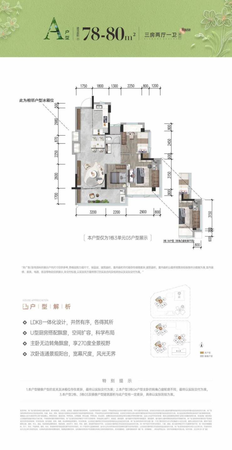 首次推首北地块1栋3单元,约80-92㎡ 3房,共195套,新规使用率高达96%-105%!