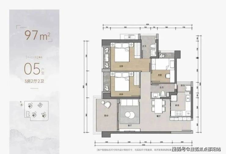 建面约97㎡的户型,产品不论是在功能设计上还是空间利用率上都是极其考究的。三开间朝南;双阳台的设计把每一片空间都高效利用,约3.6米开间,约2.4米进深奢阔景观阳台,让生活每天充满阳光与健康;厨房L型布局,一个转身即可完成洗、切、炒、取;黄金动线、操作流畅;厨房与生活阳台相连,明亮的采光会提升烹饪时的愉悦感。
