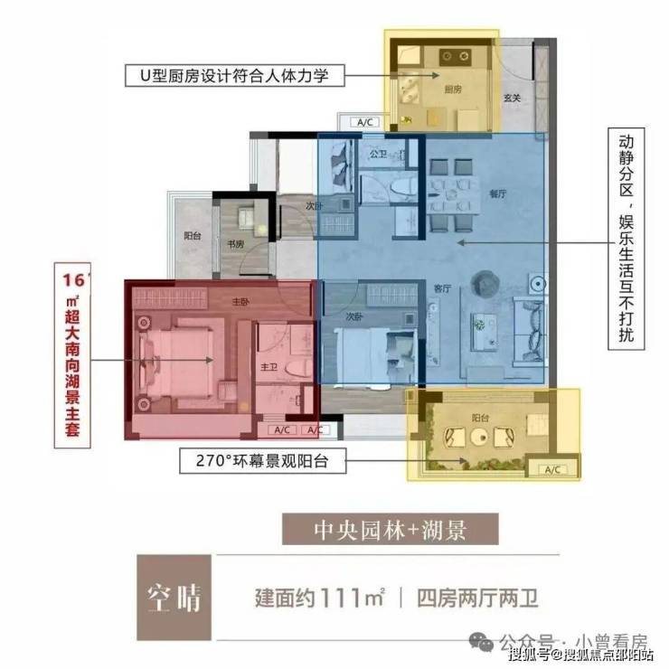 特点:270°环幕阳台设计,动静分区,娱乐生活互不打扰,16㎡超大南向湖景主套。