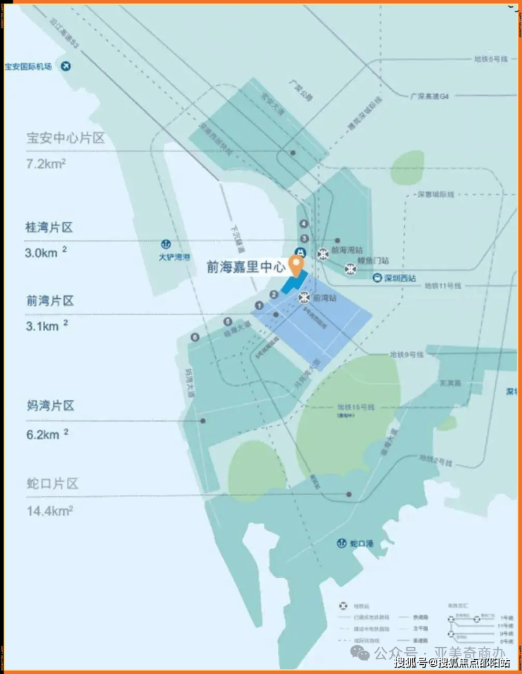• 立体交通:毗邻前海枢纽,40万㎡总建面分三期开发,海陆空多维接驳