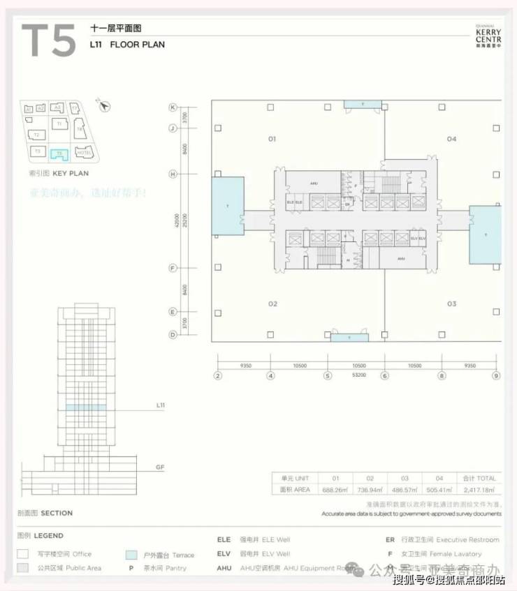 总 建 面:约40万㎡(办公面积约26.6万㎡,商业面积约4.8万㎡)