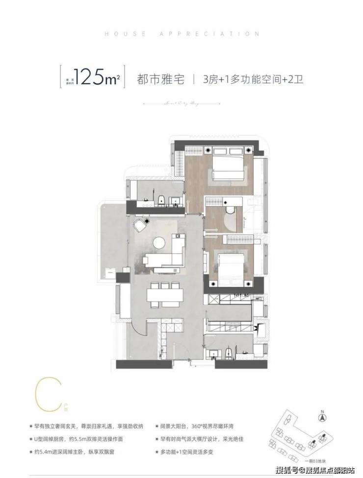 项目包含住宅、公寓、写字楼、酒店、商业、教育、公园等多种业态。目前在售的是一期的03地块由4栋住宅和2栋公寓组成,占地面积 21889.28㎡,建筑面积约16.8万㎡,容积率约8-9,车位比1:1.3;即将加推的二期是由2栋住宅+商业+办公组成。