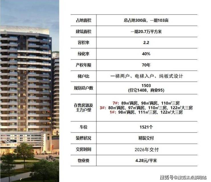 【在售1#】主力户型:98㎡两房,111㎡三房,122㎡三房【平层图】