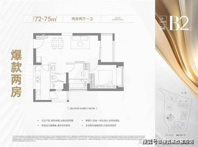 本次加推的户型方面:总共有4个户型面积,其中72-75平2房2厅1卫的户型,预计价格280-300万内,这个户型应该是关注度最高的,因为总价低适合刚需入手。