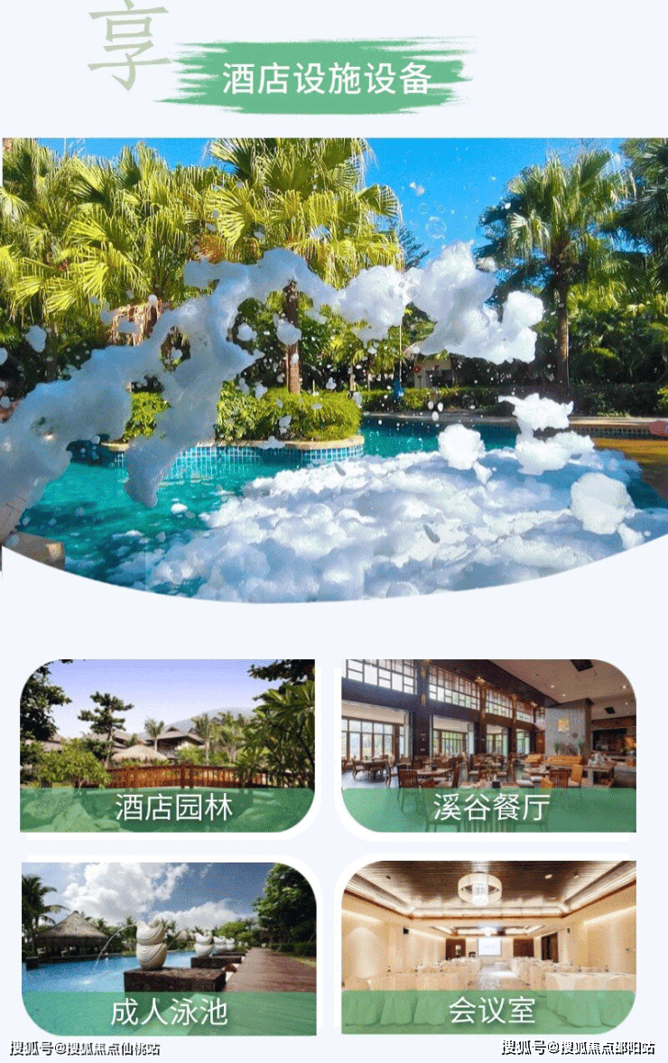 酒店位于亚龙湾国家5A级旅游度假区内,壮观的别墅群隐匿于超大面积的棕榈树群中,让您仿佛置身于一片生机盎然的生态世界,翠谷鸟语、小溪栈桥,尽显东南亚热带田园风情。