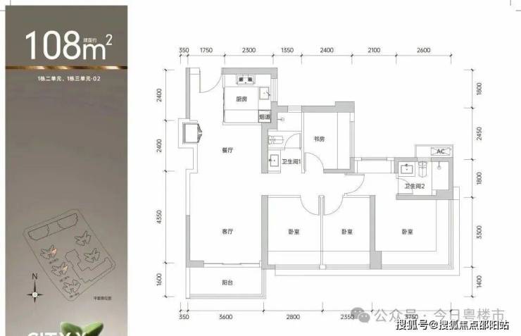 建筑面积约89㎡的3+1房2卫的01/07户型:全能型成长空间典范