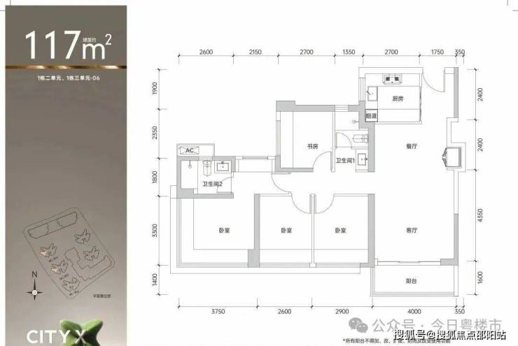 建筑面积约99㎡的3房2卫02/03/05/06户型:全南向爆款空间