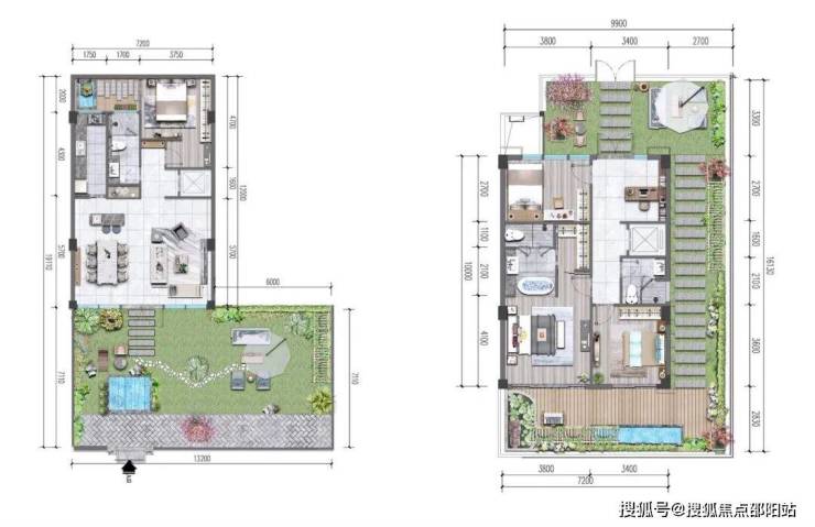 地下一层:主卧、干湿分离卫生间、客卧、儿童房、转角庭院