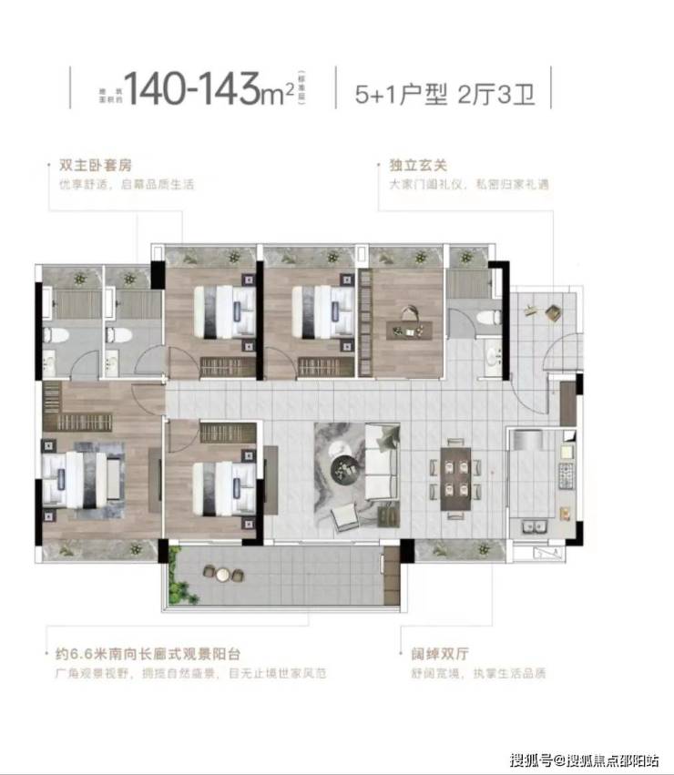 户型面积:户型涵盖建面约96㎡的三房、118㎡和126㎡的四房、143㎡的五房等,均有纯南向、大开间、大客厅等特点,空间使用效率和居住舒适度较高。