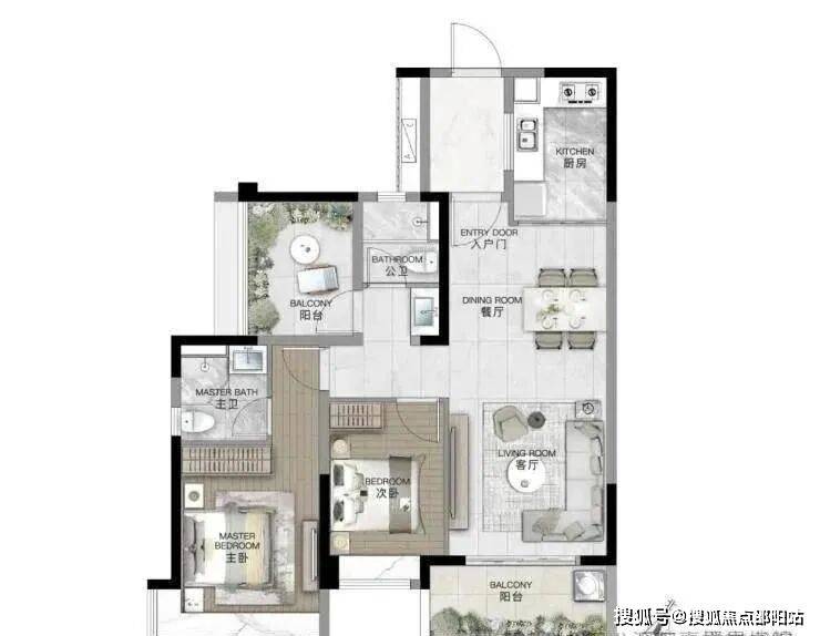 户型鉴赏:建面约98平,搞的是 2+1房,这意味着阳台改造的那个房间会相对比较拥挤,最大的亮点应该就是主套了,除了带为卫生间,还有一个270度的飘窗。