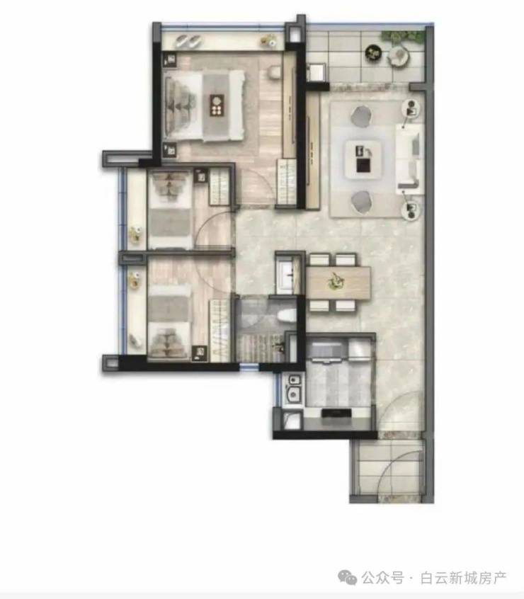 ➡78㎡江景小户三房 三室两厅一卫 260-330万