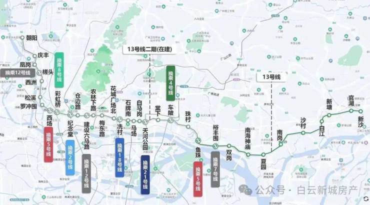 12号线(预计2024年通车)-广州换乘之王,广州市第一条无人驾驶地铁线路,与十数条轨道线无缝换乘,共经过白云文化广场、烈士陵园、二沙岛、赤沙等17个换乘站,可直达大学城,连通白云、越秀、海珠、番禺四大区域。