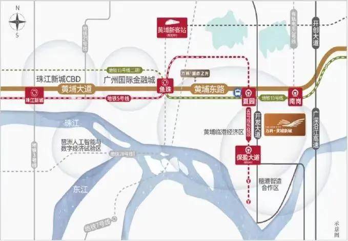 附近有广州最核心的地铁5号线保盈大道站,以及13号线的南岗站,可以直达珠江新城、金融城、鱼珠CBD。目前在售的新房到地铁口基本都在1-1.5公里,小区内有公交车可接驳到地铁口。