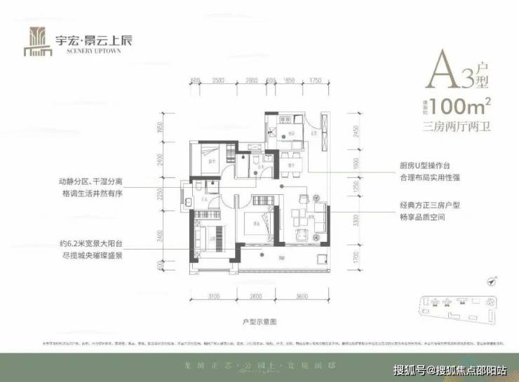 设计的是竖厅格局,客厅3.6米开间,LDKB一体化,三开间朝南,动静分区,分别做到了主卧13.2m/次卧8.58㎡/次卧7.44㎡(包含墙体飘窗),U型厨房,卫生间干湿分离,得房率约78.1%(不含赠送),客厅连接次卧出6.2米长的大阳台约10.54平,东南朝向。
