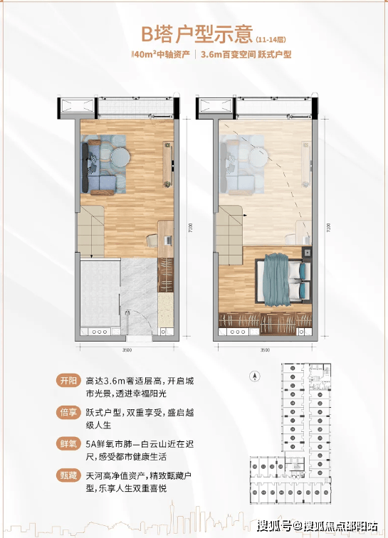 观云大厦:推售建筑面积约为36-43㎡酒店行政公馆和31-54㎡中轴精品空间,空间高度为3.4-3.6米,满足自用、办公、投资多重需求。