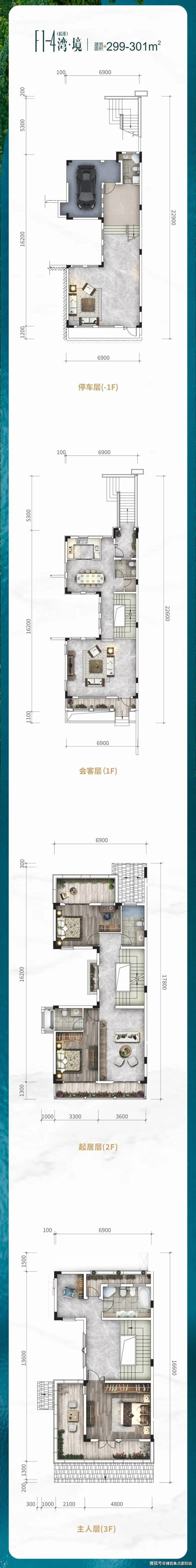 别墅户型:313-365㎡联排/双拼(415-560㎡独栋别墅)