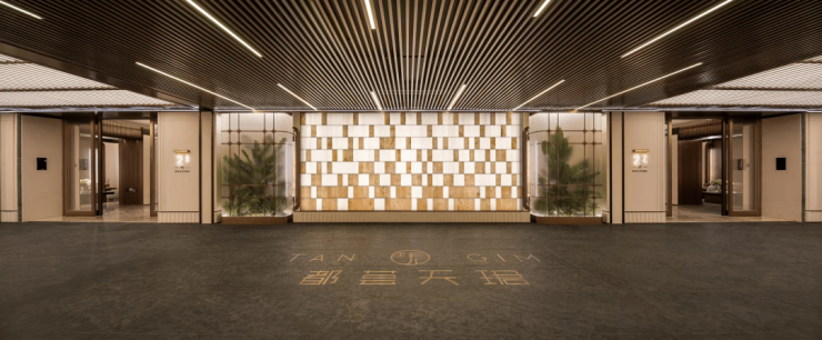 从小区大门进来是下沉的落客庭院,再进入都荟天珺的小区大堂,即可目睹约8米奢华挑空的落客大堂,其壮丽背景墙延绵40米,选用皇家白玉奢石,其色泽纯净透亮,营造出一种贵气逼人的氛围。此石材通常仅作为高端会所与豪宅的点睛之笔,而在这里,独具匠心地将其铺陈为整面墙体!身处其中,您定会被这宽敞明亮、奢华非凡且充满艺术魅力的大堂空间深深打动,感受到一种前所未有的震撼。