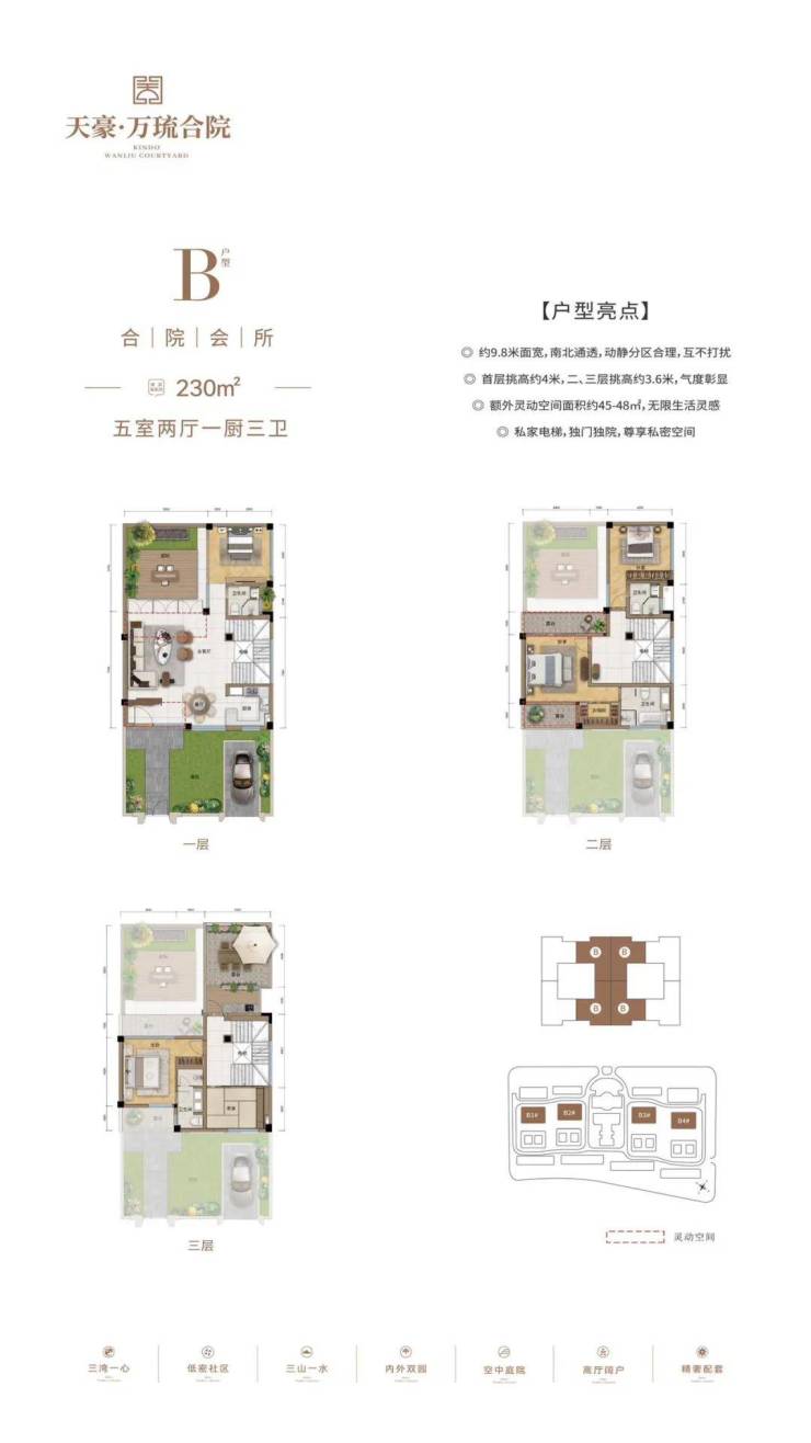 产品户型:建面约230-246㎡花园式合院,建面约276㎡空中平墅