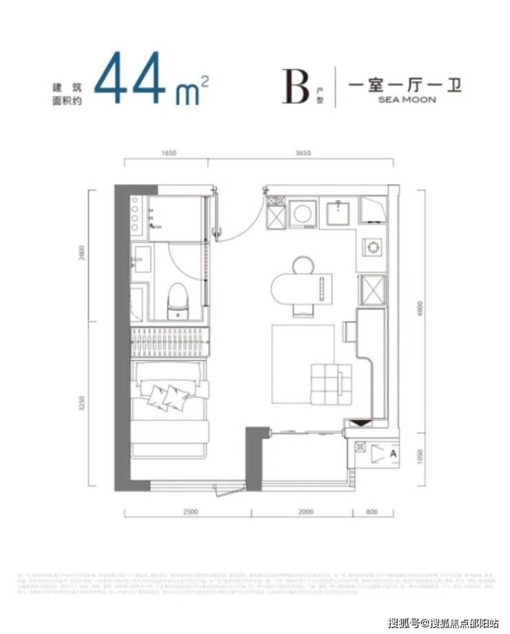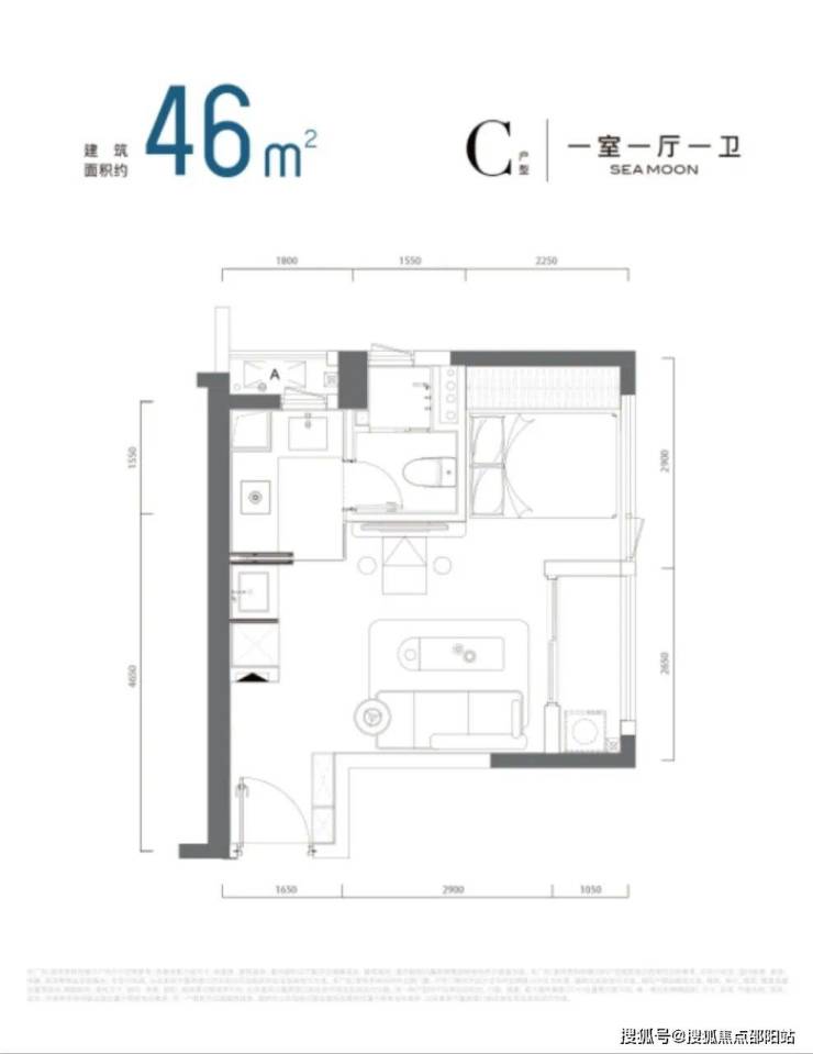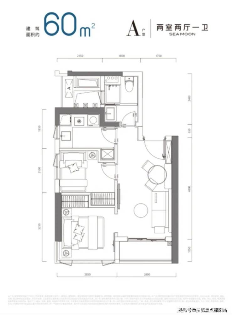 公寓产品面积段:建面约36-60m 1-2房