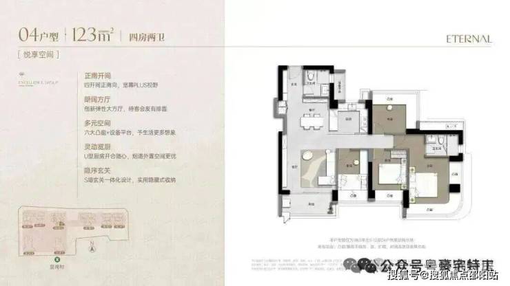 新规产品,销售使用率90%+,近1:1梯户比,大户型双电梯独立电梯厅入户,北区2梯2户,双电梯独立电梯厅入户,南区3梯4户。