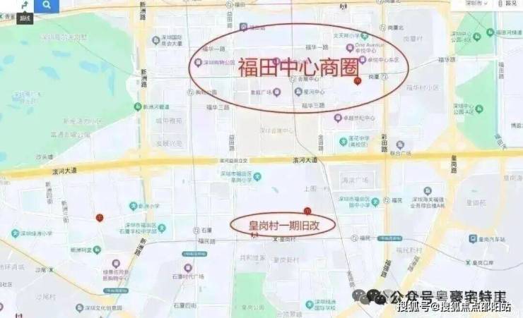 皇岗村改造项目,位于福田福民路与皇岗二街交汇处西北角,紧邻深圳地铁7号线皇岗村站,地处深圳中心的核心腹地。