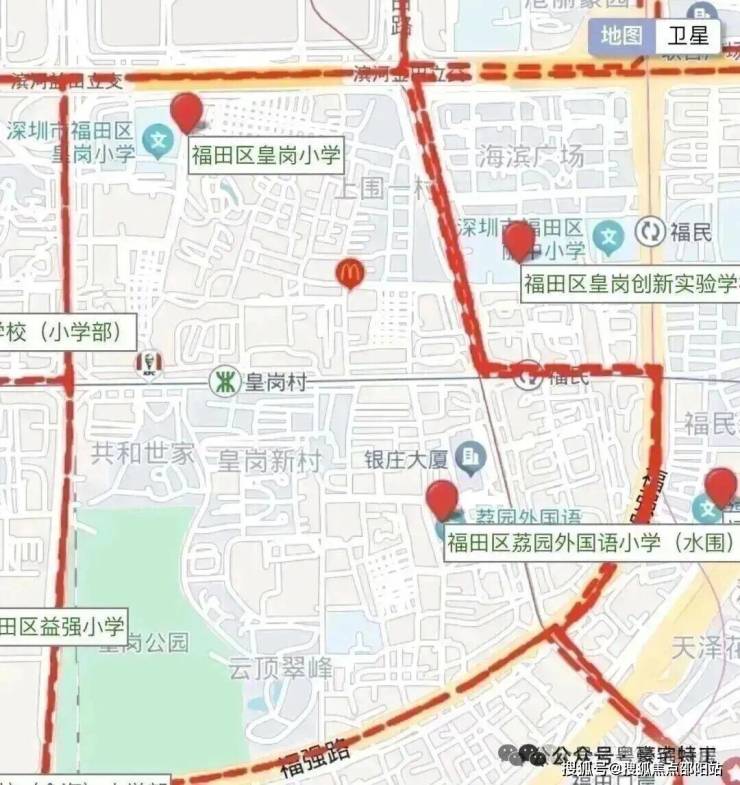 项目按2025年的学区划分来看,小学学区处于皇岗小学、荔园外国语小学(水围),中学学区处于皇岗创新实验学校(初中部)。