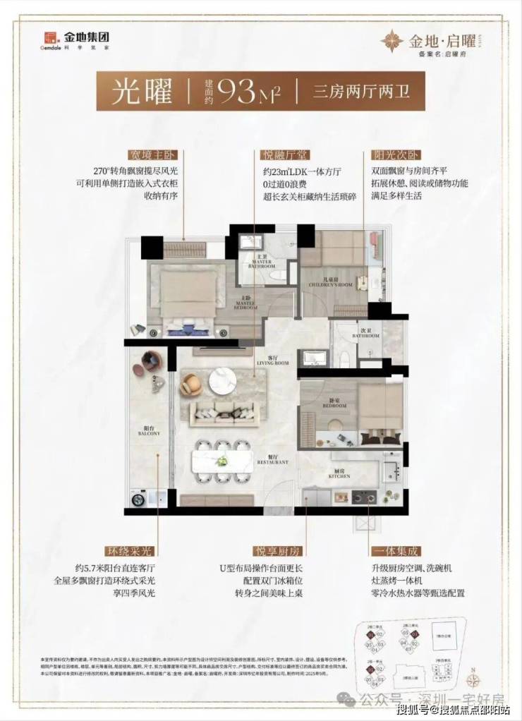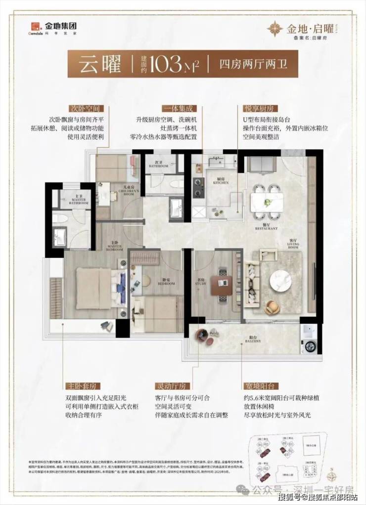 作为新规住宅的代表,金地启曜府的户型设计以高得房率、全南向布局和功能多样性 为核心亮点,得房率预计可达约90%(含赠送),实际使用面积比传统户型多出约10%。