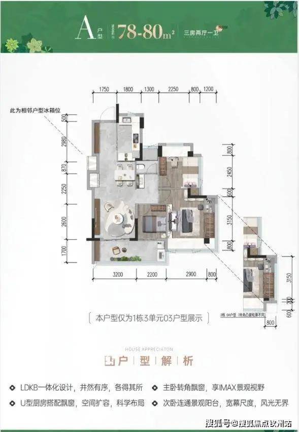 建面约80㎡3房2厅1卫(03/04户型)