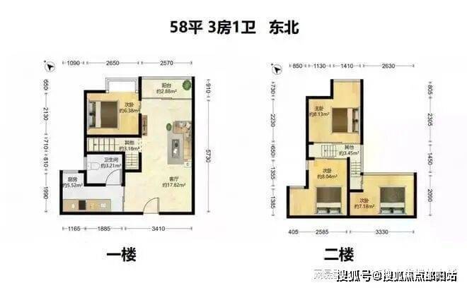 58㎡2-4房1卫370-450万单价6.3-7.7万