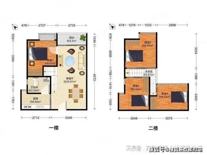 空间布局:一层主要设置客厅、餐厅、厨房和卫生间等公共区域,空间较为开阔。二层以卧室为主,保证了休息区的私密性,动静分区明显,能够满足不同功能需求,适合刚需购房者和小家庭。